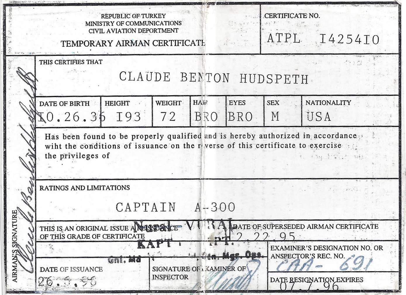 One of my fellow Pan Am A-300 Captains called me up in 1996 and told me about a Captain's position flying A-300s for a Turkish nonsked. Their aircraft were configured for 325 economy passengers. It was just for the summer. This airline flew charters mostly between several major Turkish cities and all the major German cities. They flew tourists and Turkish workers who lived in Germany. As I was about to turn 60 in a few months, I accepted the position. I flew the entire summer with them and was paid $6,000 a month in new $100 bills. No deductions. No paper work. They furnished the hotels and meals. Several times I carried as much as $14,000 in hundred dollar bills to pay landing fees and service charges at airports Holiday did not have credit with, such as Tel Aviv and Amsterdam. I was not required to sign for the money, or get a receipt for it. The third world has its own ways of doing things. The job was over at the end of the summer, and the company went out of business a month later.